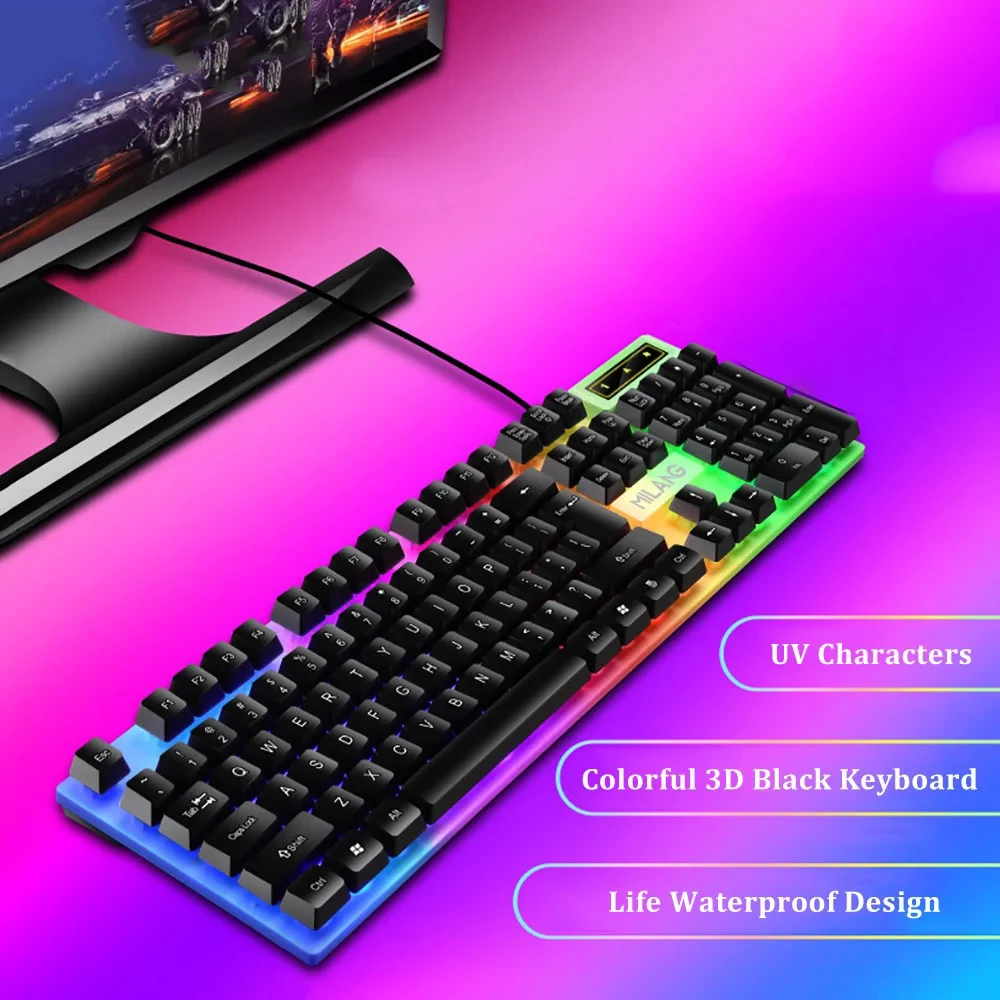 Wired Mechanical Keyboard 104 Keys Floating Button Rainbow Backlight Gaming Keyboard Business Office For laptop PC Accessories