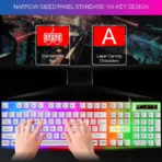 ?Narrow-sided panel standard 104 key design??Waterproof design??Rainbow lamp effect?
