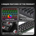 ZSUS Z61-B USB Gaming Mechanical Mini Keyboard Red Switch RGB Backlit 61 Keys Wired Feel for Game/Office
